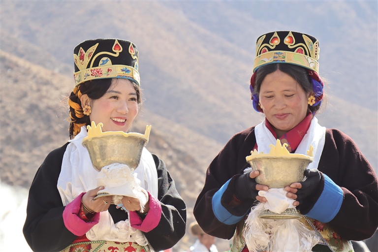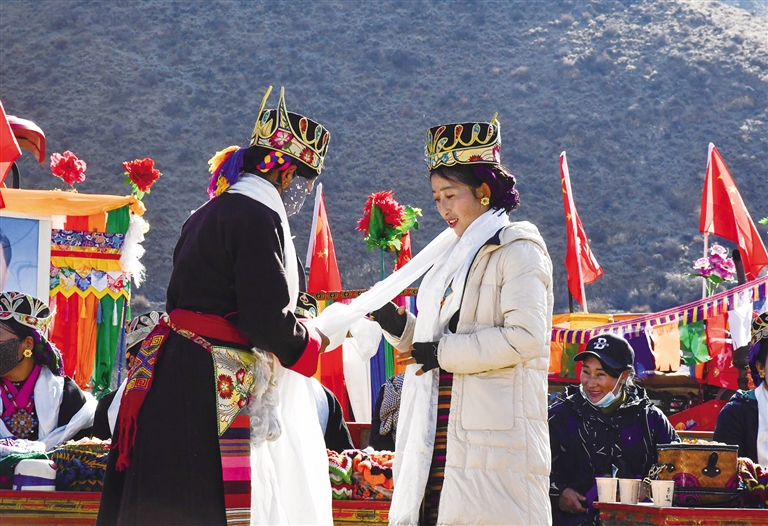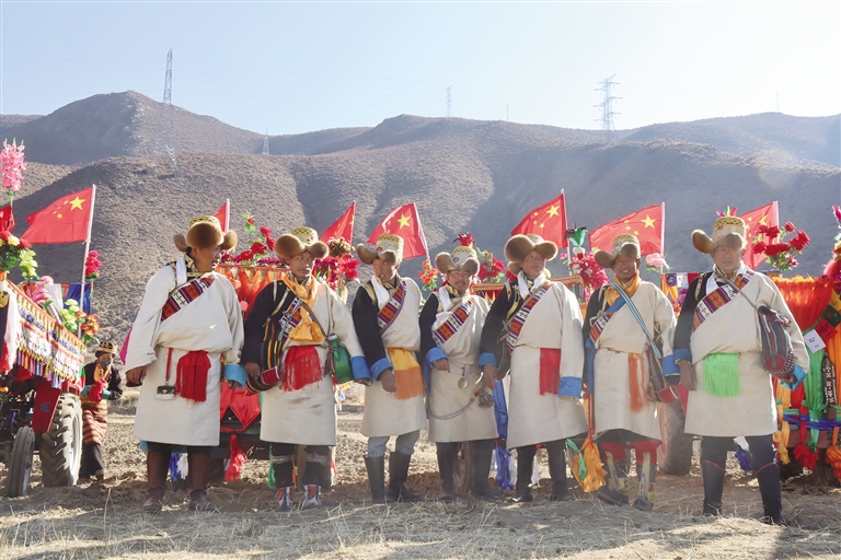 阳光下,人们的歌声回荡在金色田野中,在吉祥的歌声中,古老的民俗得以传承,美好的希望再次洒满雪域高原……