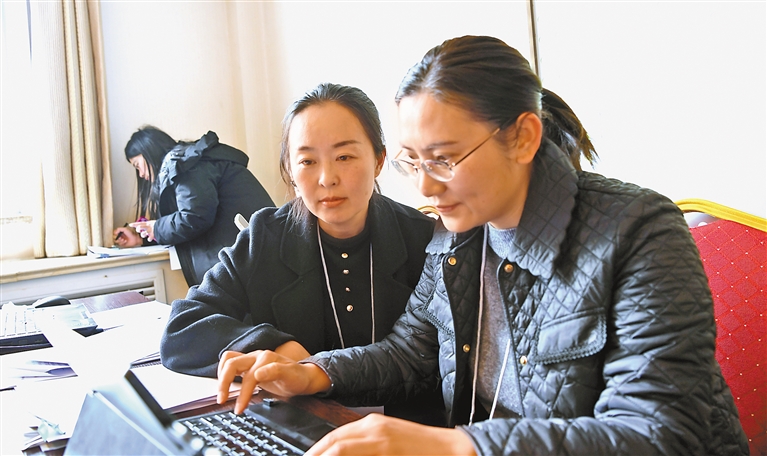 记者在两会新闻中心赶稿。本网记者 洛桑 摄